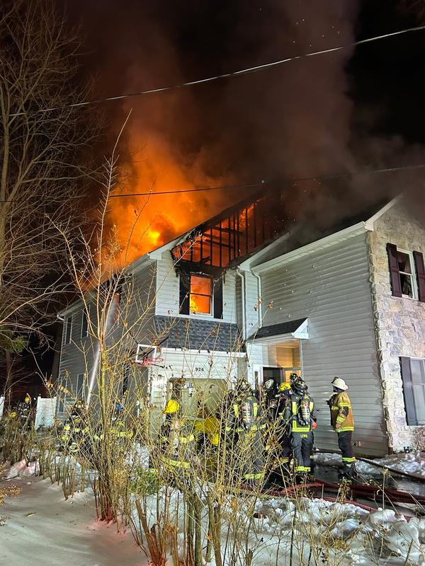 | Foam 35 responded with 8 personnel shortly after dispatch. Moments later, police arrived on scene and confirmed a working fire with heavy fire showing from the second floor.