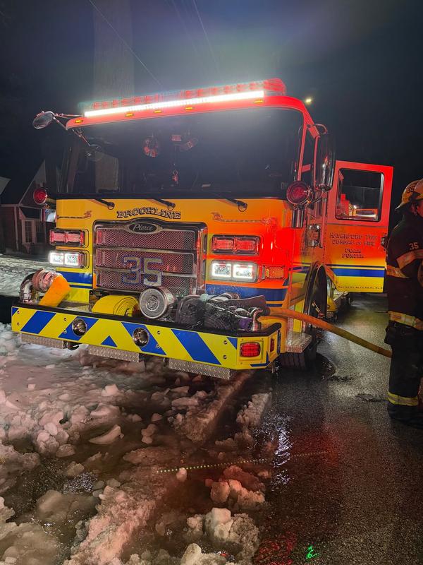 Ladder 21 arrived and confirmed the working fire, while Engine 25 (Merion Fire Company of Ardmore) secured a water supply from the Haverford Road side of the incident. Foam 35 established a secondary water supply, with fire visible from down the block, and began a 900-foot lay of 5” hose to support operations.